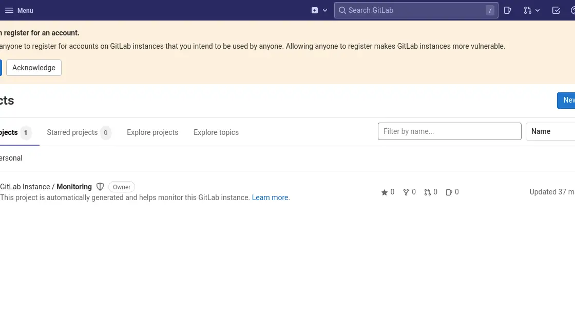 Log in and you will see the GitLab dashboard.